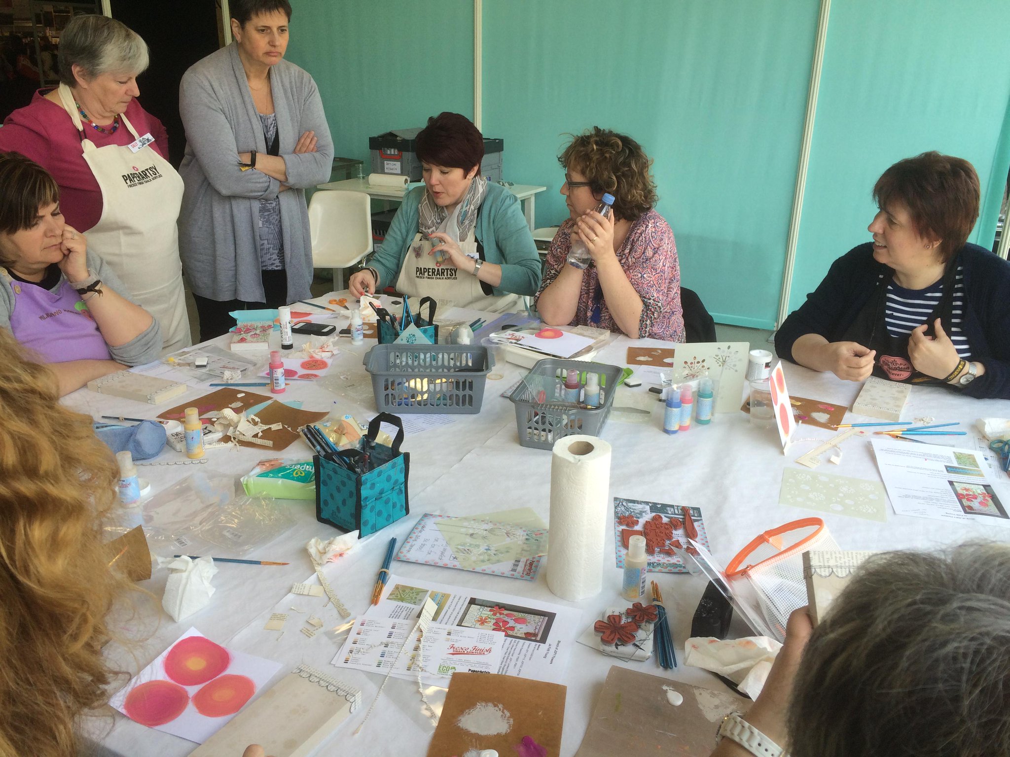 I didn't get a chance to take many photos of my classes - all very busy - and I only took a few around the shops/stands themselves,.. and then it was mainly of shop names I wanted to remember - I even forgot to take photos of the PaperArtsy stand! (or the demo samples!) Very unusual for me & so I've borrowed a couple of stand and class photos from PaperArtsy's Leandra's twitter feed.